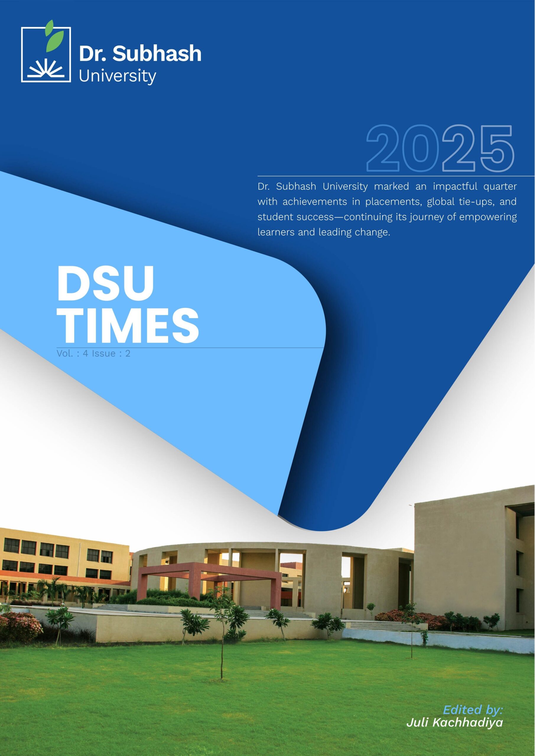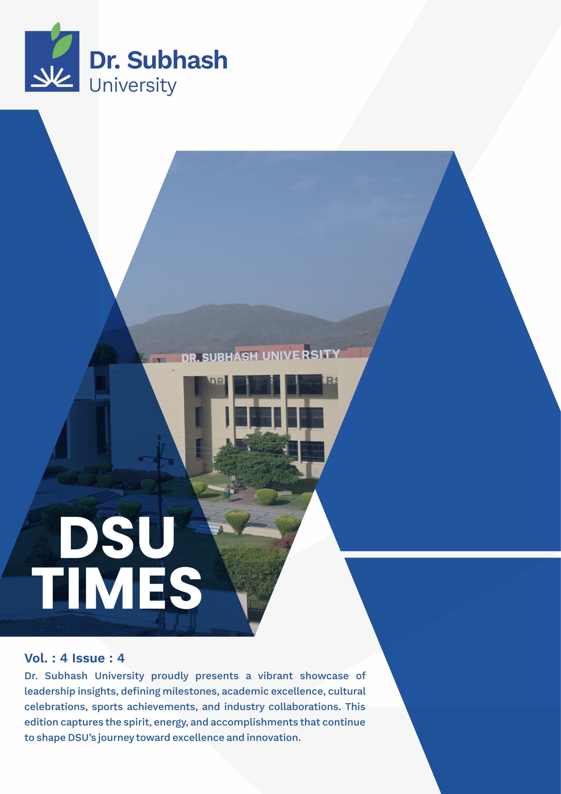 Dr. Subhash University proudly presents a vibrant showcase of leadership insights, defining milestones, academic excellence, cultural celebrations, sports achievements, and industry collaborations. This edition captures the spirit, energy, and accomplishments that continue to shape DSU’s journey toward excellence and innovation.
