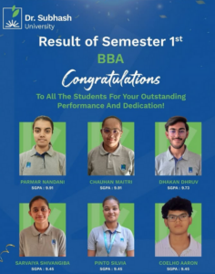 The outstanding performance of the BBA Semester 1 students is a testament to their dedication, perseverance, and commitment to excellence. Their achievements reflect the quality of education and the supportive environment provided at Dr. Subhash University the best private university in Gujarat.