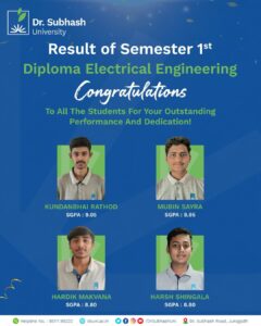 Once again, heartfelt congratulations to all our brilliant students! Your success brings immense pride to Dr. Subhash University, the best private university in Gujarat. Keep learning, keep innovating, and keep shining as future leaders in the field of electrical engineering!